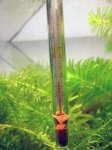 Leptodictyum riparium to improve the water-quality and a few rocks to aid skin shedding. No Filtration, but therefore frequent water changes every week (but to be honest sometimes I am lazy and skip a few weeks).