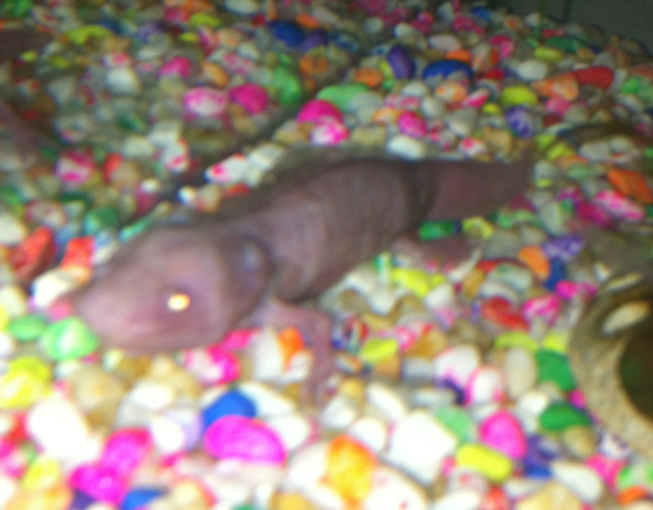Its gills then started to shrink, instead of having red fluffy gills, he has little stumpy black things. He also has this weird thing where he gets a black flaky mucus? all over his body, it always starts in one spot, and this spot is now a raised bump.