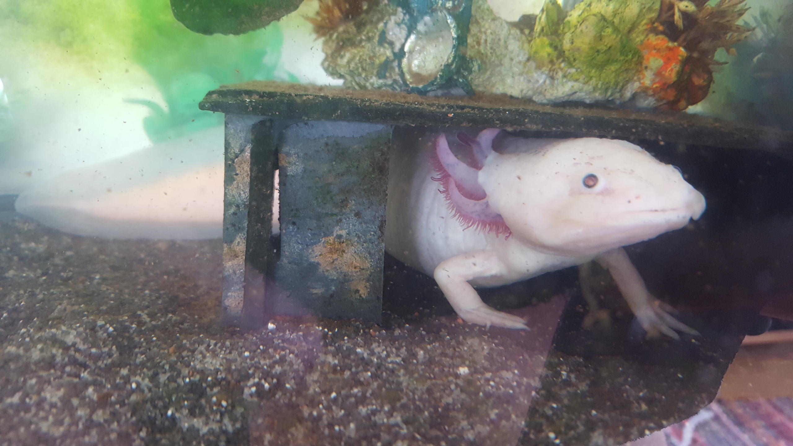 Also in the tank is Darwin who is a 7 year old leucistic. Her gills are much less frilly than they used to be but she is active and eats well so I'm not too concerned.